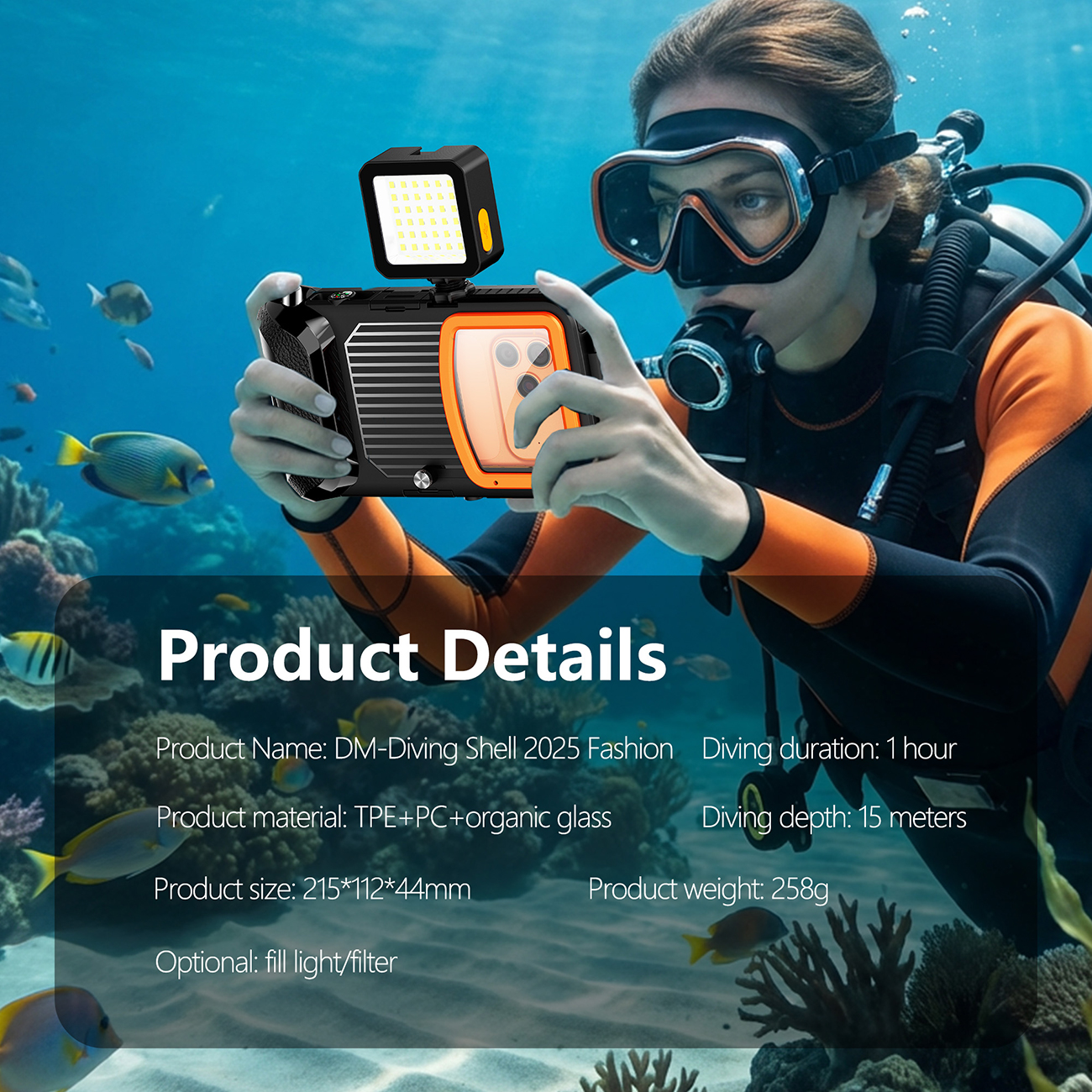2026 DM Series 15-Meter Waterproof Fashion Dive Case for Apple and Samsung.